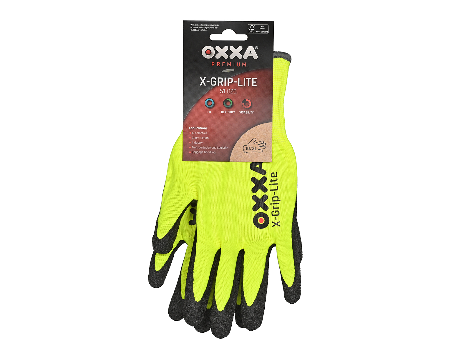 OXXA Arbeitshandschuhe X- Grip- Lite gelb / schwarz, EN388, Cat. 2, auf Blister: 32 x 12 cm