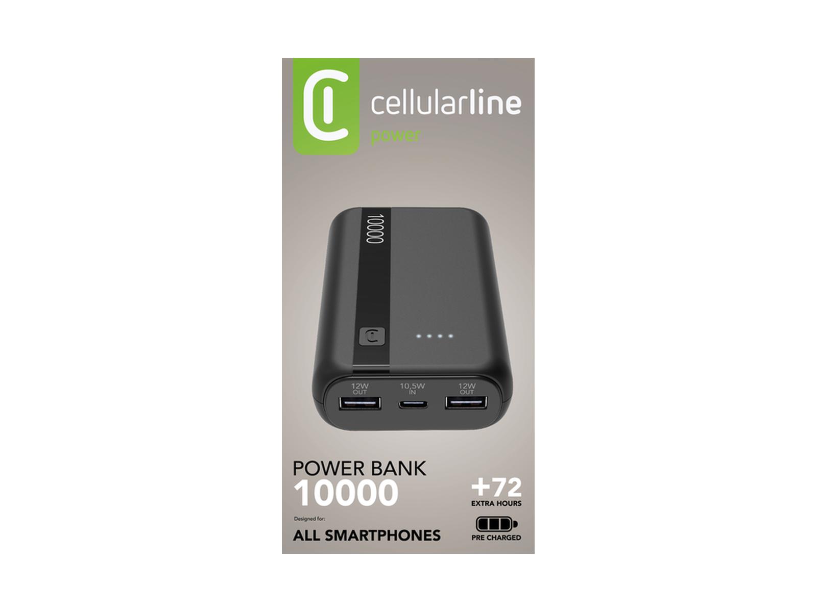 cellularline Powerbank 10000 mAh, 2-USB-A/ 1-USB-C, schwarz